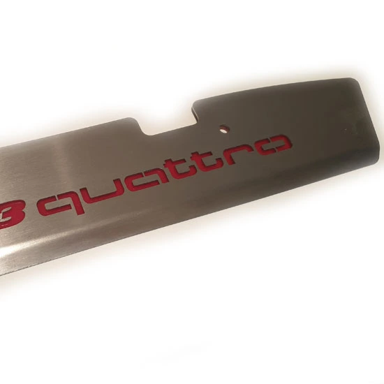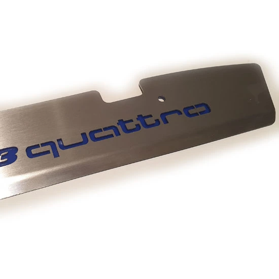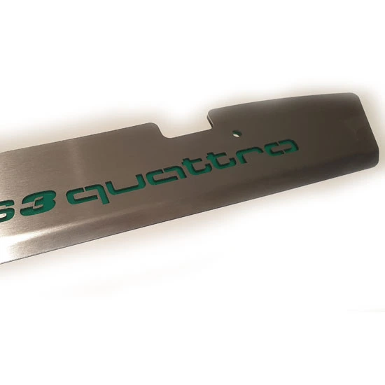 Made from T304 satin finished stainless steel and the S3 quattro logo also cut into the plate. Also includes all required stainless steel fixtures and spacers.